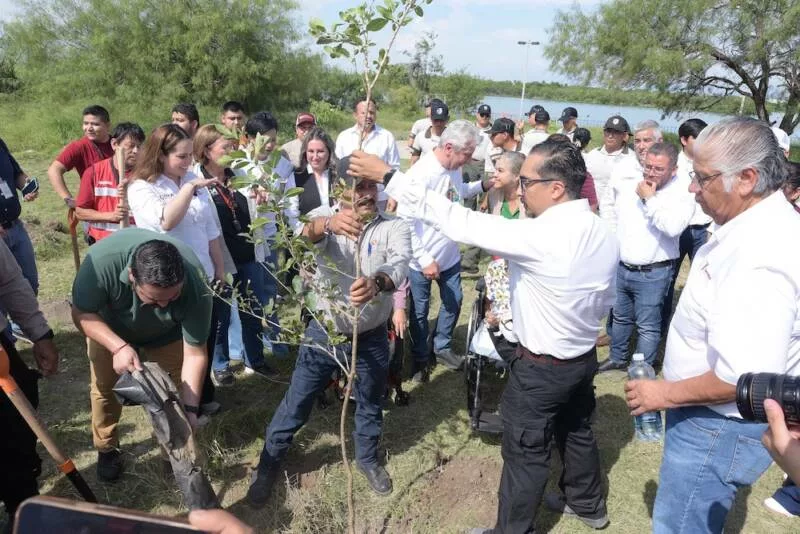 Reynosa, Tamaulipas.- Con la unión de voluntades entre los tres órdenes de gobierno, sociedad civil, instituciones educativas y legisladores locales, se llevó a cabo una jornada de reforestación en la Laguna La Escondida, un espacio emblemático de Reynosa que poco a poco recupera su esplendor.