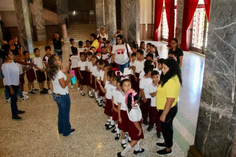 Ciudad Victoria, Tamaulipas.– En el marco de la estrategia “Academia Social de Valores y Jornadas Cívicas” que impulsa la Secretaría de Bienestar Social, alumnas y alumnos de la escuela primaria “Lic. Emilio Portes Gil”, de la colonia Unidad Modelo de Victoria, disfrutaron una visita guiada por el emblemático edificio de Palacio de Gobierno y el Centro Cultural Tamaulipas.