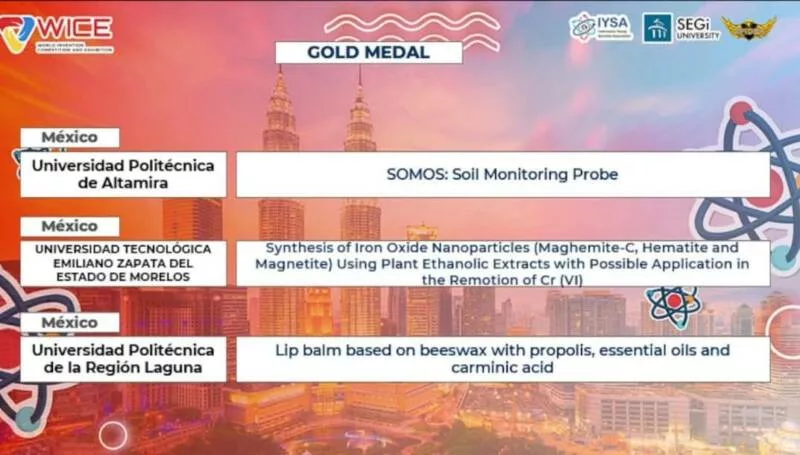 Kota Damansara, Malasia.– El talento de los tamaulipecos sin fronteras quedó demostrado una vez más durante la séptima edición del World Invention Competition and Exhibition (Competencia y Exhibición Mundial de Invenciones) WICE 2025, celebrada en Malasia, donde dos estudiantes universitarios ganaron la medalla de oro.