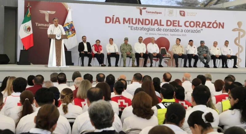Ciudad Victoria, Tamaulipas. – En el marco de la conmemoración del Día Mundial del Corazón, el gobernador Américo Villarreal Anaya convocó a todo el personal del sector salud a ser educadores de las y los tamaulipecos y reforzar el cuidado de los factores de riesgo promoviendo estilos de vida saludables, lo que permitirá continuar la reducción de la mortalidad de pacientes hospitalizados por infarto agudo de miocardio, que en lo que va de la administración ha disminuido en un 25 por ciento.