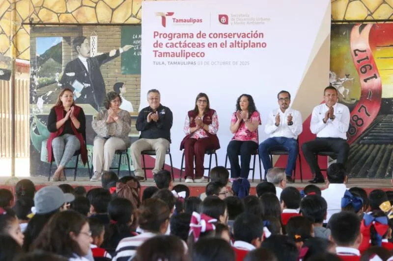 Tula, Tamaulipas.- Con la participación entusiasta de más de mil 200 niñas y niños de 30 escuelas, se llevó a cabo la clausura del programa “Conservación de Cactáceas en el Altiplano Tamaulipeco”, una iniciativa que impulsa el amor por la flora endémica y la identidad regional desde las aulas.