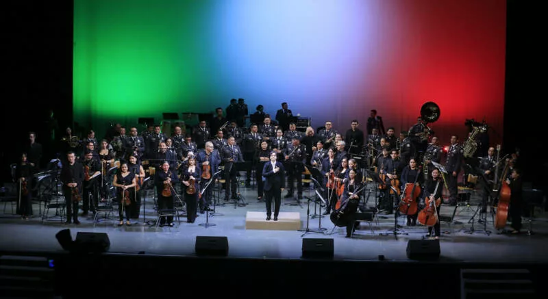 En la segunda parte del concierto se realizó una fusión única con la Orquesta Sinfónica de la Universidad Autónoma de Tamaulipas y la Banda de Guerra Monumental de la Coordinación Territorial Región Golfo de la GN.