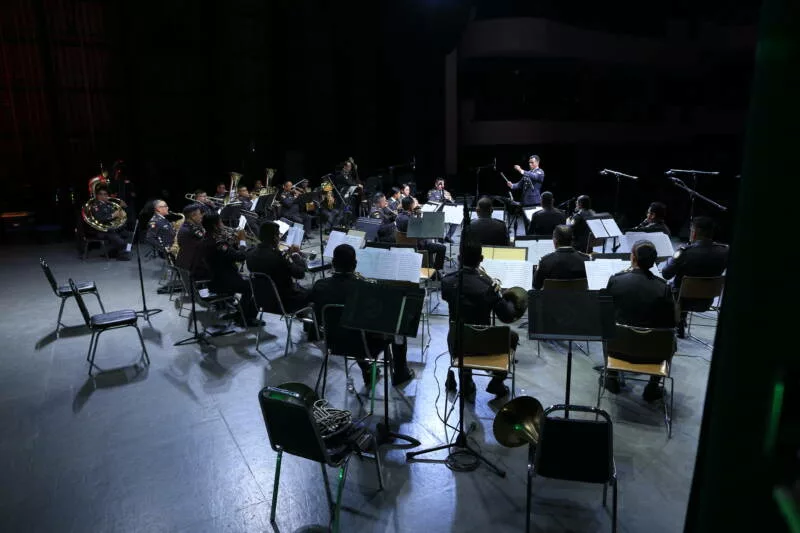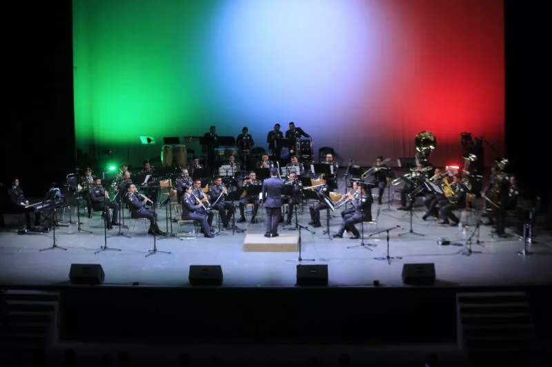 Más tarde, el teatro Amalia G. de Castillo Ledón se vistió de gala con la Orquesta Sinfónica de Alientos, bajo la dirección del maestro Remigio Reyes González, que ofreció el concierto "Un paseo por México", el cual incluyó música mexicana especialmente adaptada para instrumentos de aliento, evocando un espíritu festivo y la identidad de nuestras raíces.