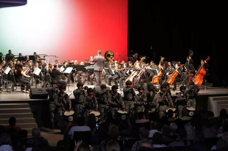 La Universidad Autónoma de Tamaulipas, a través de la Orquesta Sinfónica (OSUAT), compartió escenario con la Orquesta Sinfónica de Alientos y la Banda de Guerra de la Guardia Nacional, en un espectáculo musical sin precedentes que celebró la grandeza del folclor mexicano, la unión interinstitucional y el poder transformador de la cultura.