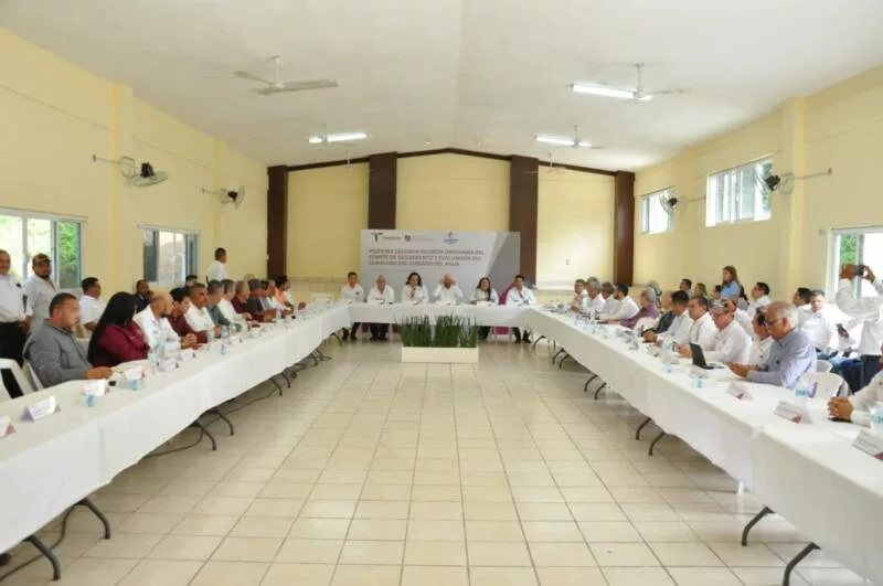 Nuevo Morelos, Tamaulipas. - En seguimiento a las políticas hídricas impulsadas por el gobernador Américo Villarreal Anaya, el secretario de Recursos Hidráulicos para el Desarrollo Social, Raúl Quiroga Álvarez, encabezó en el municipio de Nuevo Morelos la Vigésima Segunda Reunión Ordinaria del Comité de Seguimiento del Semáforo del Cuidado del Agua, acompañado por la alcaldesa Yaneth Nájera Cedillo y la gerente general de COMAPA, Shintia Martínez Rodríguez.