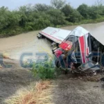 Cuando circulaba por la carretera Victoria Matamoros, un tráiler tipo caja cerrada se salió del camino a la altura del kilómetro 53 para caer al Río Pilón.