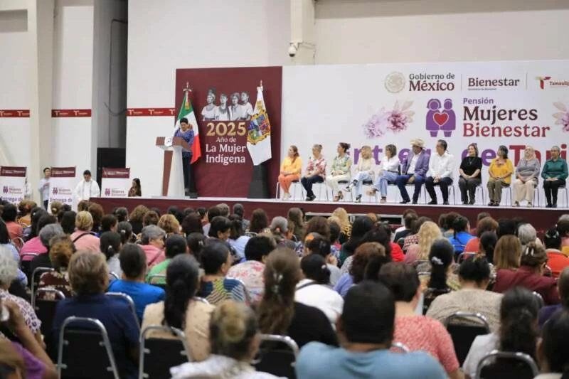 Ciudad Victoria, Tamaulipas.- Al presidir la entrega de tarjetas del programa Pensión Mujeres Bienestar a dos mil tamaulipecas reunidas en el Polyforum de esta capital, el gobernador Américo Villarreal Anaya destacó la visión humanista de la presidenta Claudia Sheinbaum para reconocer a quienes han contribuido a forjar una mejor sociedad en Tamaulipas y en México.