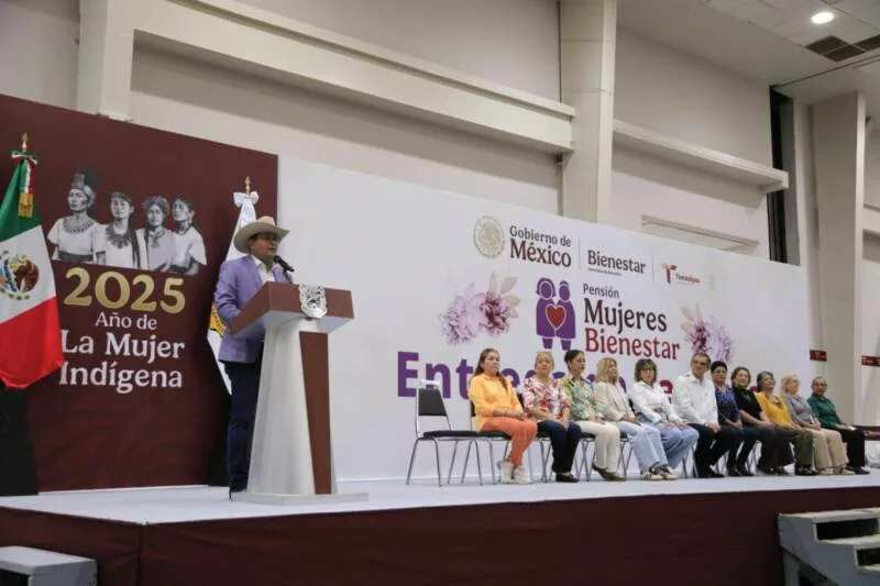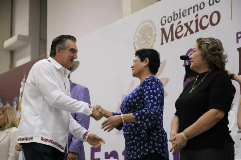 Durante la entrega simbólica a 30 de las dos mil beneficiarias presentes, acompañado por Luis Lauro Reyes Rodríguez, delegado de Programas Federales para el Desarrollo en Tamaulipas, y de Silvia Casas González, secretaria de Bienestar Social, el gobernador mencionó que, tal como lo ha señalado la presidenta, este apoyo es un reconocimiento a la contribución que durante muchos años han tenido las mujeres como protectoras de la familia y protectoras de los valores más valiosos de la formación e integración de la sociedad.