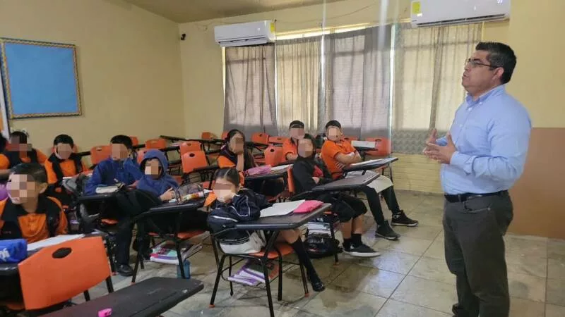 Matamoros, Tamaulipas.- Como parte de las acciones desempeñadas por el Centro Regional de Ejecución de Medidas para Adolescentes para prevenir el delito en la infancia, se llevó a cabo la plática “Acoso Escolar” en la Escuela Primaria Policarpo Posada Dimas.