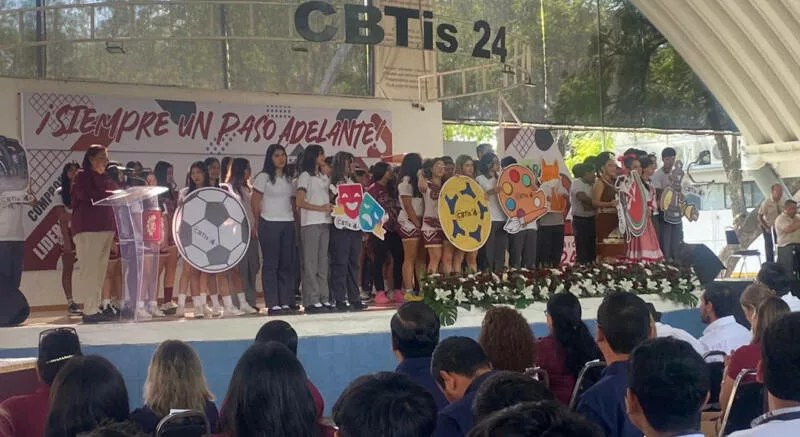 Por su parte, Olegario Muñiz Cura, responsable estatal de la DGETI, felicitó a la comunidad educativa y reconoció el prestigio nacional del plantel, mientras que Ramón Ignacio Guerra Salas, director del CBTIS 24, agradeció el respaldo de la Secretaría de Educación y resaltó la historia y el legado de la institución.
