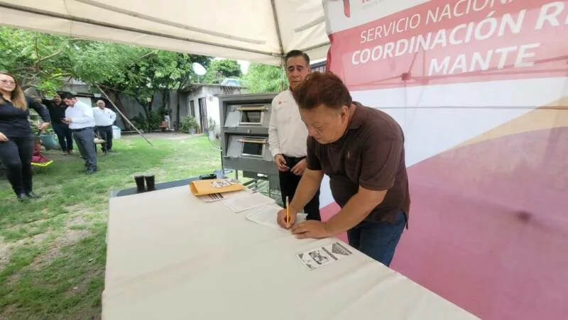 El Mante, Tamaulipas.- Como parte de las acciones del Subprograma Tamaulipas Emplea y la Estrategia Tamaulipas Equipa, la Secretaría del Trabajo y Previsión Social realizó la entrega de un horno vertical al negocio “Repostería Rocío” en el municipio de El Mante, con el propósito de fortalecer su producción, fomentar el autoempleo y contribuir al desarrollo económico de la región.