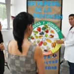 La actividad, a cargo del Área de Nutrición del Departamento de Salud de la SSPT consistió en colocar dentro del plato a diferentes alimentos en el grupo correspondiente, destacando la recomendación de utilizar el agua simple como principal fuente de hidratación y evitar los productos ultra procesados que contengan sellos de advertencia.
