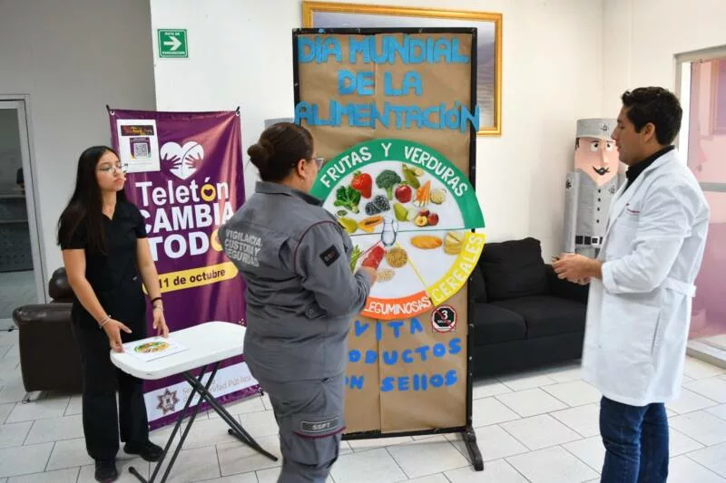Ciudad Victoria, Tamaulipas.- En el marco del Día Mundial de la Alimentación, la Secretaría de Seguridad Pública de Tamaulipas (SSPT) llevó a cabo una dinámica a través de la cual, personal operativo y administrativo conoció la actualización del plato del bien comer y los diferentes grupos de alimentos.