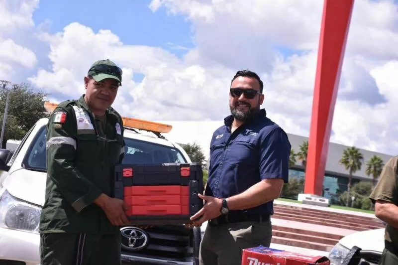 Entre el equipo entregado se encuentran cajas de herramientas, crucetas, martillos, cinceles, cables pasa corriente, gatos hidráulicos, compresores, cargadores de baterías, llantas y apoyo en mantenimiento preventivo de las unidades vehiculares que forman parte de este servicio, entre otras más.