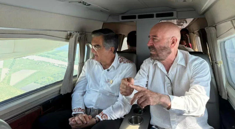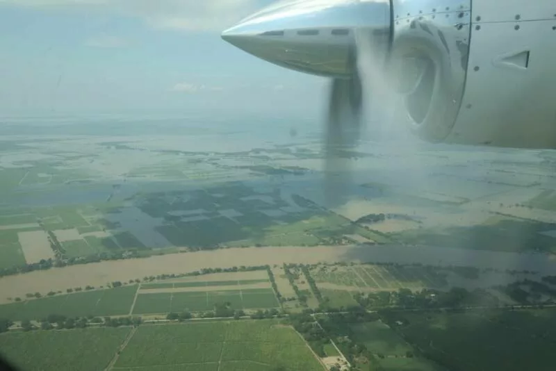La tarde de este viernes, a bordo del avión "Tláloc" y acompañado por Raúl Quiroga Álvarez, secretario de Recursos Hidráulicos, el ejecutivo tamaulipeco recorrió las márgenes del Pánuco, hasta el municipio de Tamuín, San Luis Potosí, en donde constató las afectaciones a diversas comunidades rurales a causa del desbordamiento del río.