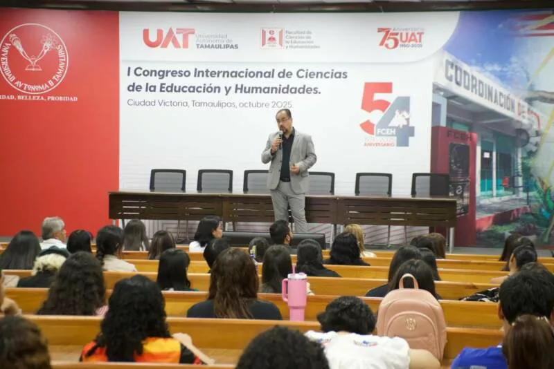 Este encuentro se llevó a cabo en el marco del 54 aniversario de la Facultad de Ciencias de la Educación y Humanidades (FCEH) de la Universidad Autónoma de Tamaulipas (UAT), con la participación de estudiantes, docentes, expertos y especialistas en educación superior y humanidades, quienes intercambiaron conocimientos, analizaron retos y fortalecieron sus competencias en un entorno internacional.