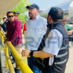 El coordinador Estatal, Luis Gerardo González de la Fuente, junto al Secretario de Recursos Hidráulicos, Raul Quiroga Álvarez y el Director de Protección Civil Tampico, evalúan desde el estado de Veracruz la avenida de agua.