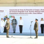 Durante la ceremonia celebrada la mañana de este lunes, en las instalaciones del 77 Batallón de Infantería, el general Juan José Gómez Ruiz, comandante de la 4ª Región Militar, dio cumplimiento a la orden de la presidenta de la República, Claudia Sheinbaum Pardo, y tomó la protesta al general Chávez Baños.