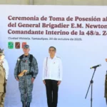 Ciudad Victoria, Tamaulipas. - El gobernador Américo Villarreal Anaya asistió como invitado de honor a la toma de posesión al cargo y protesta de bandera del general brigadier de Estado Mayor, Newton Manuel Chávez Baños, como comandante interino de la 48 Zona Militar.