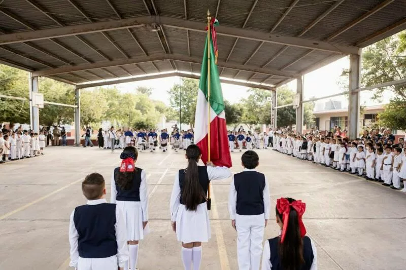 H. Matamoros, Tamaulipas.- En un significativo acto celebrado en la escuela primaria Ernesto Gutiérrez González, el alcalde Beto Granados presidió los honores a la bandera y realizó la entrega oficial de una nueva barda perimetral. La obra, de más de 45 metros lineales, fue construida mediante una inversión superior a los 500 mil pesos provenientes del programa FAISMUN, como parte del compromiso del gobierno municipal con la infraestructura educativa.