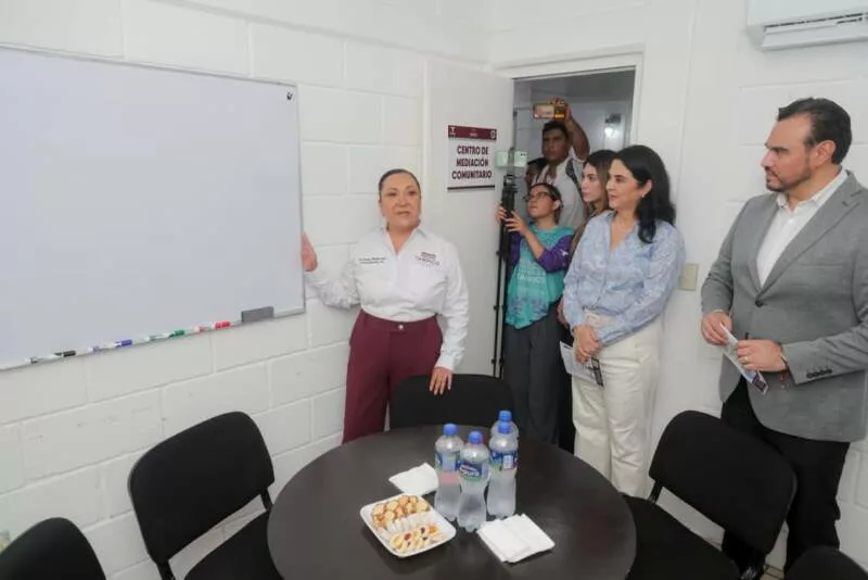 Mónica Villarreal, explicó que en los Centros de Mediación Comunitarios se atienden conflictos vecinales y familiares a través de procesos guiados por mediadores capacitados, que buscan acuerdos justos y sostenibles, contribuyendo al fortalecimiento del tejido social.