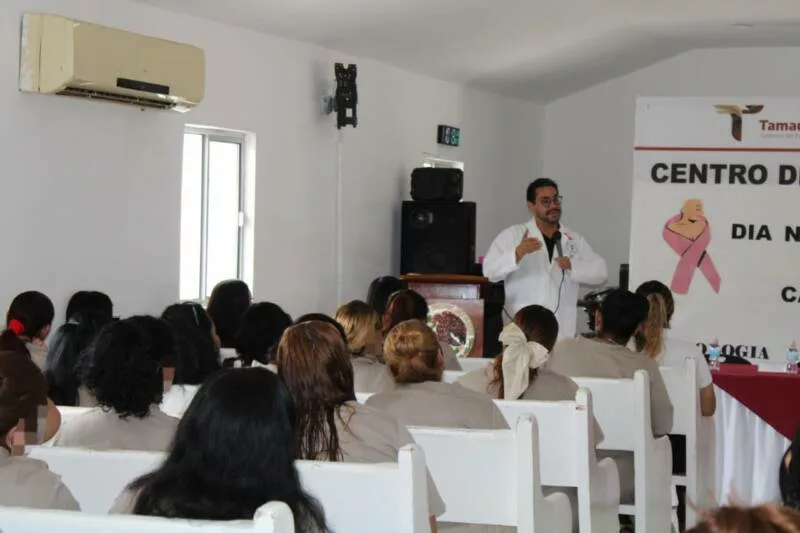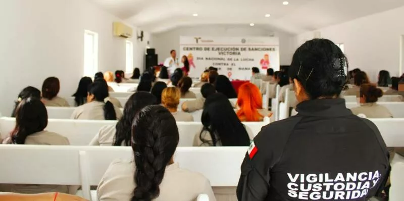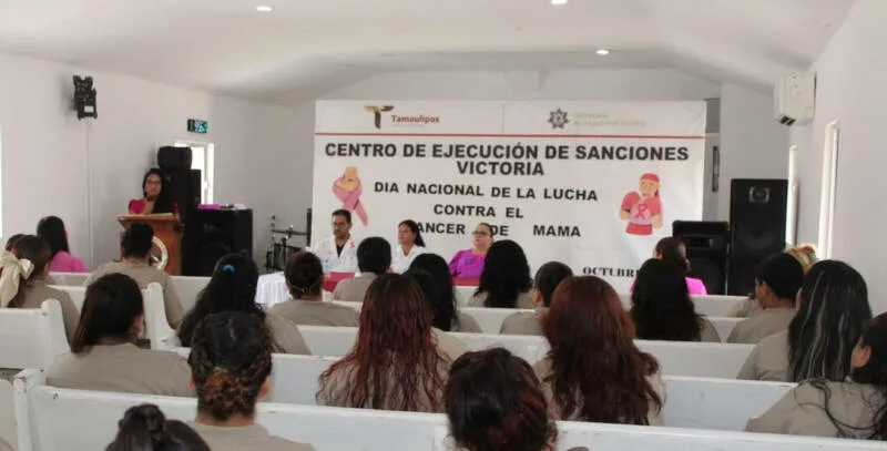 Ciudad Victoria, Tamaulipas.- En conmemoración del Día Mundial de la Lucha contra el Cáncer, el Centro de Ejecución de Sanciones (CEDES) Victoria, realizó una conferencia dirigida a mujeres privadas de la libertad (PPLs), con el objetivo de fomentar la detección temprana del cáncer de mama y fortalecer la atención a la salud mental dentro del sistema penitenciario.