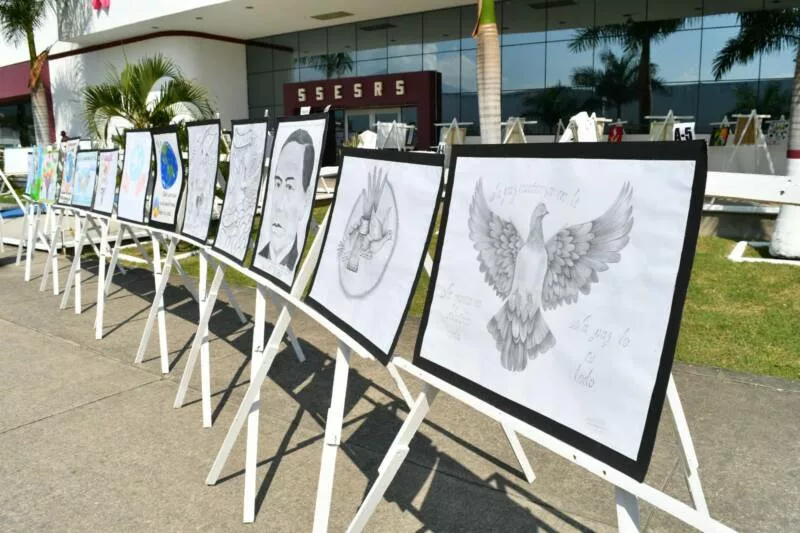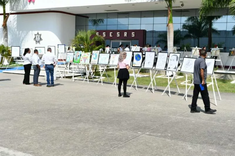 La exposición de los trabajos se realiza en la explanada frente al edificio del Centro de Ejecución de Sanciones (CEDES) del Complejo de Seguridad Pública en Ciudad Victoria, donde se exhiben los carteles elaborados con distintas técnicas como lápiz, acuarela y pintura sobre lienzo.