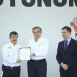Acompañado por el rector de la UAT, Dámaso Anaya Alvarado, y dirigentes del sector ganadero del estado, el gobernador recibió de manos de Leandro David Soriano García, director general de Inocuidad Agroalimentaria, Acuícola y Pesquera del Senasica, el documento que permite la actividad diaria de la sala de corte y deshuese para la especie bovina, cámara de producto terminado, almacén, empaque y andenes de carga y descarga en el rastro ubicado en la Facultad de Medicina Veterinaria y Zootecnia, en esta capital.