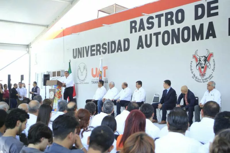 Acompañado por el rector de la UAT, Dámaso Anaya Alvarado, y dirigentes del sector ganadero del estado, el gobernador recibió de manos de Leandro David Soriano García, director general de Inocuidad Agroalimentaria, Acuícola y Pesquera del Senasica, el documento que permite la actividad diaria de la sala de corte y deshuese para la especie bovina, cámara de producto terminado, almacén, empaque y andenes de carga y descarga en el rastro ubicado en la Facultad de Medicina Veterinaria y Zootecnia, en esta capital.