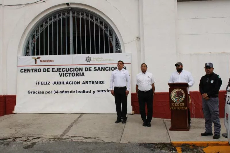 Ciudad Victoria, Tamaulipas.- El Centro de Ejecución de Sanciones (CEDES) Victoria llevó a cabo una ceremonia de reconocimiento para el custodio Artemio Rivera Cadengo, quien concluyó su servicio activo tras 34 años de labor ininterrumpida dentro de la Secretaría de Seguridad Pública de Tamaulipas (SSPT).