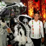 Ciudad Victoria, Tamaulipas.- En un ambiente impregnado por el aroma de la flor de cempasúchil, el pan de muerto y las luces de las velas, el gobernador Américo Villarreal Anaya y la presidenta del Sistema DIF Estatal, María de Villarreal presidieron la premiación del concurso estatal de catrinas y catrines "Almas Tamaulipecas" y la muestra del altar monumental del Día de Muertos en las escalinatas de Palacio de Gobierno .