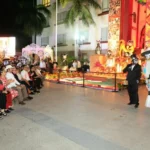 Este año el altar monumental elaborado por artesanos tamaulipecos que se ubica en las escalinatas de Palacio de Gobierno luce gigantescas figuras de catrinas, alebrijes, tapetes multicolores, flor de cempasúchil y cientos de imágenes de tamaulipecos y tamaulipecas que ya no están entre nosotros, las cuales fueron enviadas por sus familiares.