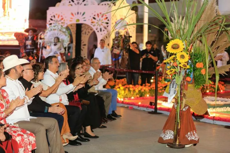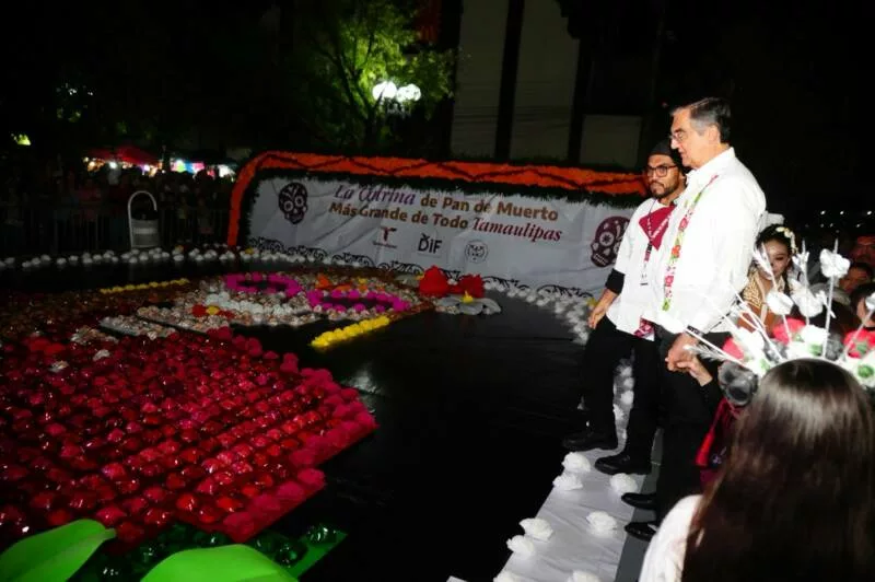 Como parte de esta celebración en la que también estuvieron presentes, Silvia Casas González, secretaria de Bienestar Social, así como la directora general del DIF, Patricia Lara Ayala, alcaldesas y alcaldes, legisladores y las y los funcionarios del gobierno estatal, también se llevó a cabo la presentación de la catrina de Pan de Muerto Más Grande de Tamaulipas, con más de mil piezas elaborada por alumnos de la licenciatura en Gastronomía de la Universidad Vizcaya de las Américas de esta capital, con ingredientes regionales como mezcal de la sierra chiquita, naranja de Padilla y miel de azahar, de Victoria.