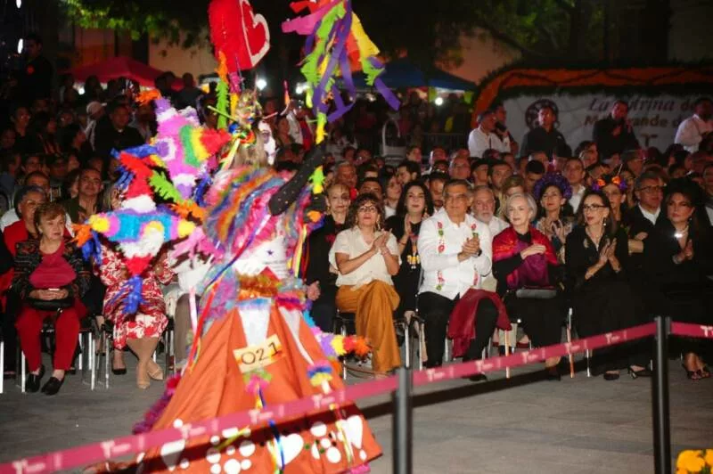 Luego del desfile de catrinas y catrines, el gobernador entregó el premio de primer lugar del certamen a Flor del Mar López Ruiz, del municipio de Llera; el segundo puesto correspondió a Itzamara Lugo Arias, de Nuevo Laredo, y en tercer lugar se ubicó Hanaa Lee Morales, de Altamira.