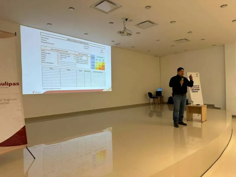 Nuevo Laredo, Tamaulipas.- Con el propósito de garantizar ambientes de trabajo más seguros y saludables, la Secretaría del Trabajo y Previsión Social de Tamaulipas impulsa la Jornada de Capacitación en Seguridad, Salud e Higiene Laboral dirigida al personal del Gobierno Municipal de Nuevo Laredo, iniciativa que busca reforzar las competencias del personal en materia de prevención de riesgos laborales.