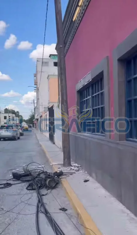 Como “chivo en cristalería”, un tráiler de carga circulando en calles de la Zona Centro (prohibida la circulación para estas unidades de grandes dimensiones), causo múltiples daños materiales a comercios y en postería de electricidad, telefonía e internet.