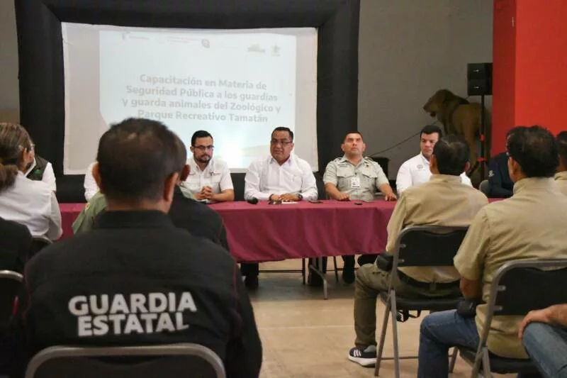 Ciudad Victoria, Tamaulipas.- Con el propósito de fortalecer las capacidades del personal de seguridad y operativo del Zoológico y Parque Recreativo Tamatán, la Secretaría de Seguridad Pública de Tamaulipas (SSPT) facilitó la impartición de una capacitación especializada en protocolos de actuación, manejo de multitudes y primeros auxilios.