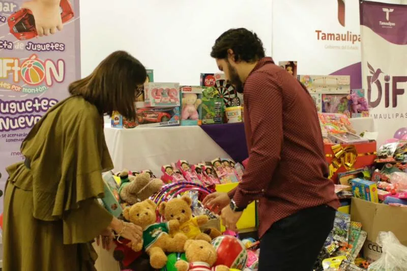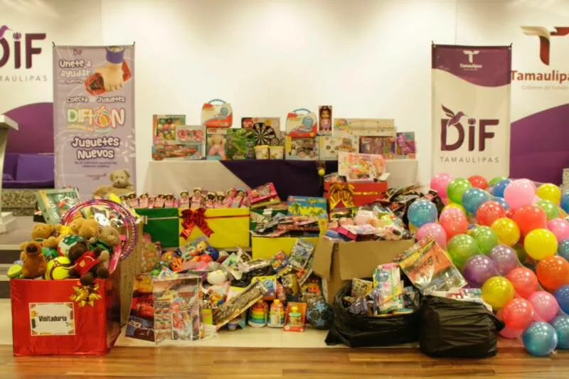 Ciudad Victoria, Tamaulipas.- La Secretaría del Trabajo y Previsión Social de Tamaulipas (STPS), encabezada por su titular Luis Gerardo Illoldi Reyes, participó con entusiasmo en la campaña DIFTON, realizando la entrega de juguetes que fueron recolectados por el personal de la dependencia para llevar alegría a niñas y niños tamaulipecos.