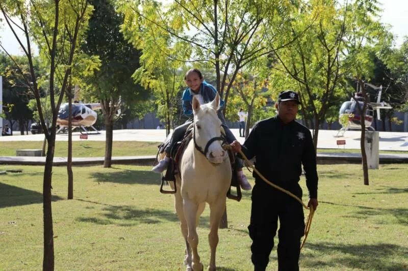 Asimismo, dieron paseos a caballo guiados por jinetes de la Guardia Estatal y presenciaron una demostración del trabajo realizado por los binomios caninos y manejadores, ambos pertenecientes a la Dirección de Agrupamientos Policiales.