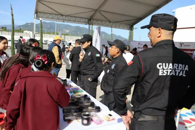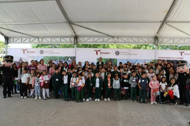 Ciudad Victoria, Tamaulipas.- Con base en la política de puertas abiertas de la Secretaría de Seguridad Pública de Tamaulipas (SSPT), niños y niñas que estudian el nivel básico visitaron las instalaciones del Complejo Estatal de Seguridad Pública y sostuvieron una convivencia con personal de las diferentes unidades de la Guardia Estatal en el marco del tercer aniversario.