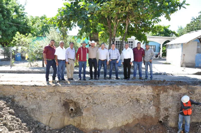 El recorrido incluyó la inspección de la calle Vicente Guerrero, punto donde se concentran los esfuerzos para mejorar el sistema sanitario que da servicio a las familias de la zona.