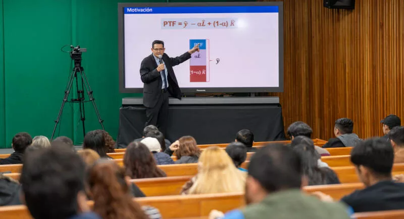 Ante docentes y estudiantes reunidos en el Centro de Excelencia de la UAT, el ponente resaltó que el crecimiento de la productividad regional es clave para lograr un incremento económico sostenido en el largo plazo, mejorar los salarios, aumentar la competitividad y reducir los precios, lo cual, contribuirá a generar un mayor valor económico y bienestar social.