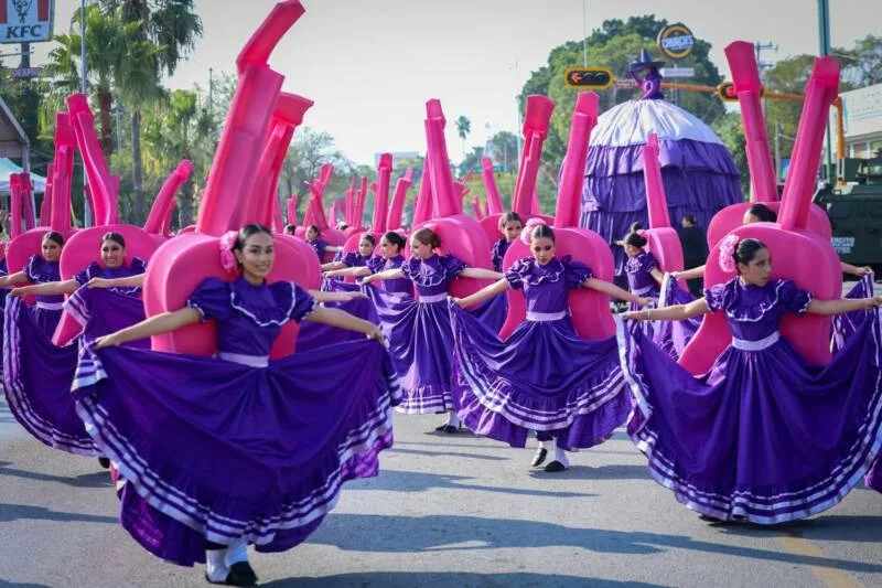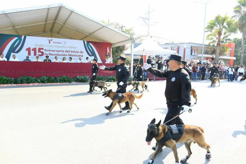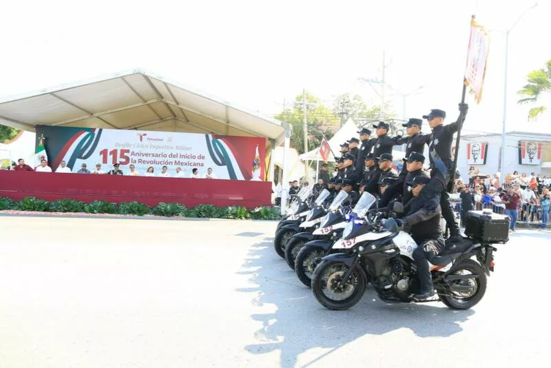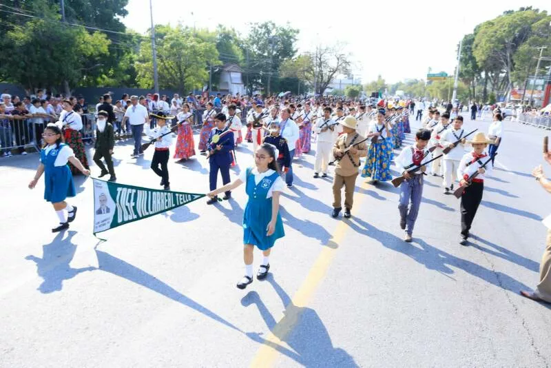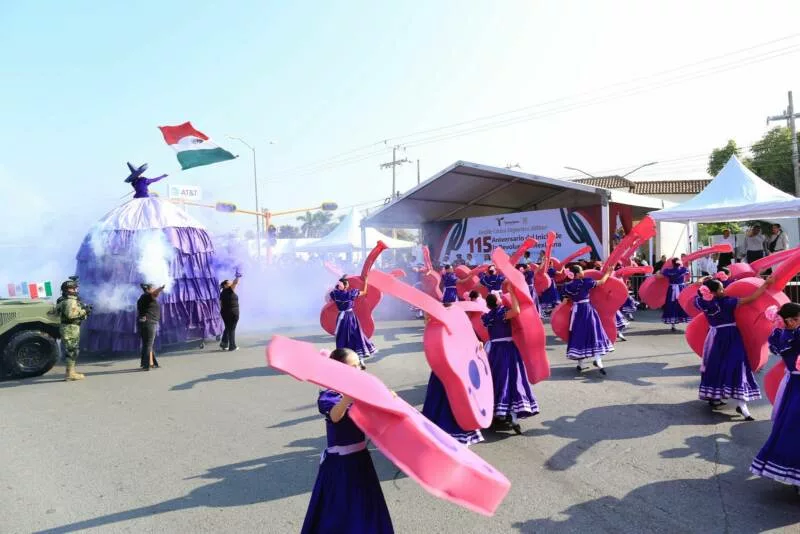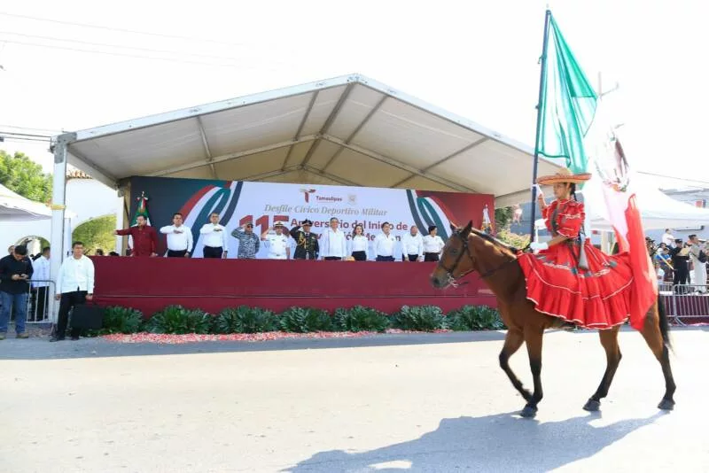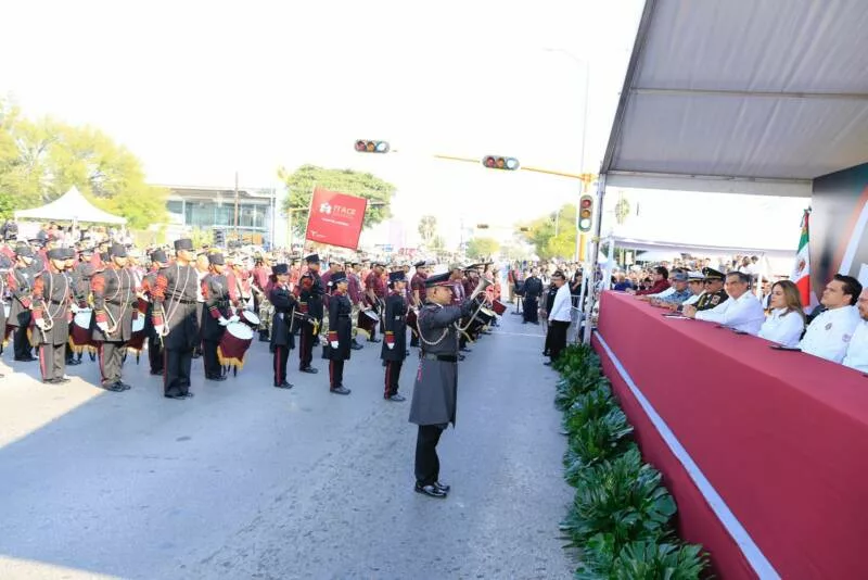 En un marco lleno de folclor, música tradicional mexicana, majestuosos vestuarios y mucho colorido, con representaciones de los caudillos revolucionarios, bailables y tablas gimnásticas, también desfilaron a lo largo del bulevar Tamaulipas 255 integrantes del Ejército Mexicano, Fuerza Aérea y Guardia Nacional, y 724 elementos de la Guardia Estatal, haciendo un total de más de 3,500 participantes.