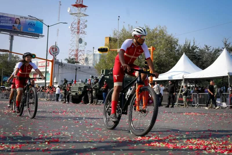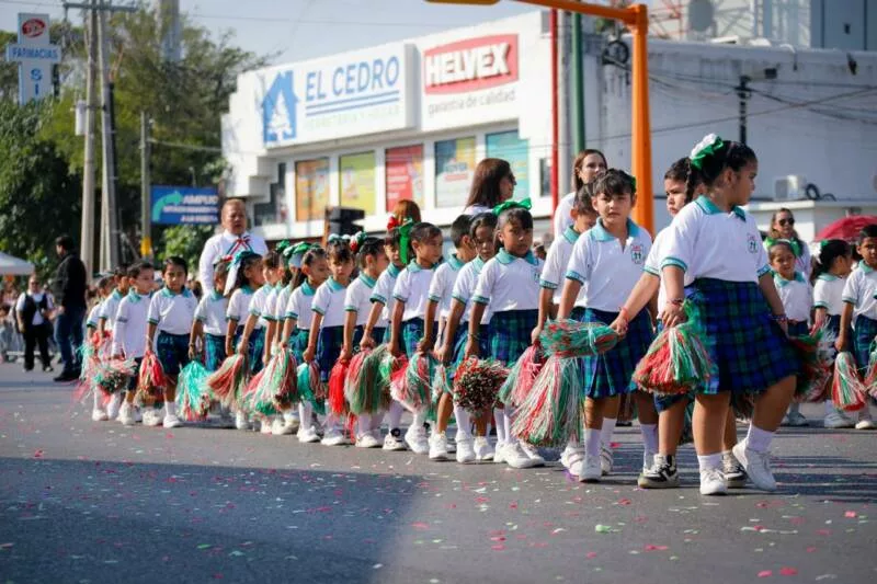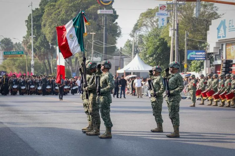 Ante la algarabía de miles de familias que se dieron cita para aplaudir el paso de los contingentes, también se sumaron 20 bandas de guerra, 54 conscriptos del Servicio Militar Nacional, 400 elementos de Protección Civil Estatal, 40 elementos de la Cruz Roja Mexicana y 13 cabalgantes.