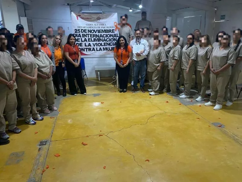 Refirmando su compromiso institucional para garantizar a la población penitenciaria femenil entornos libres de violencia, el personal del CEDES Altamira se vistió con prendas color naranja, color representativo de esta causa.