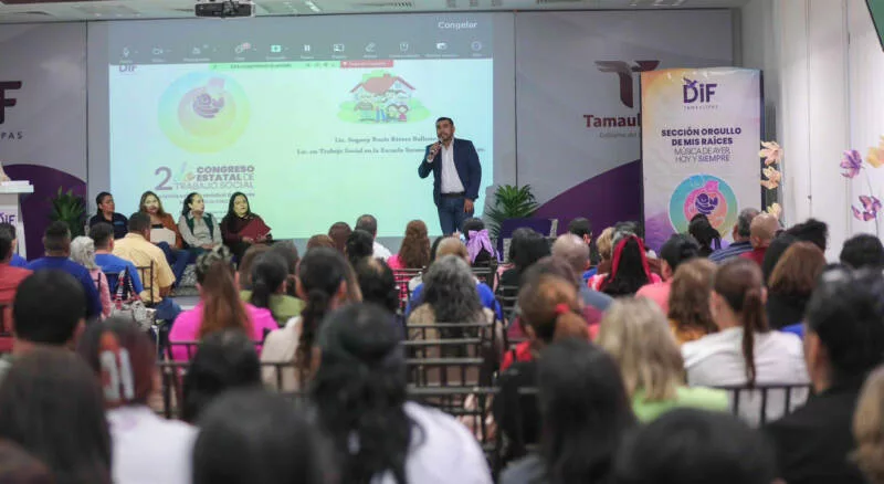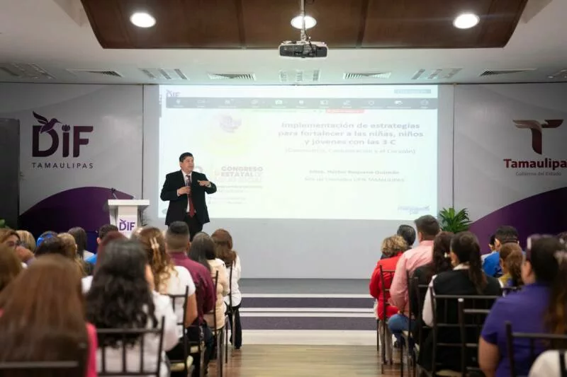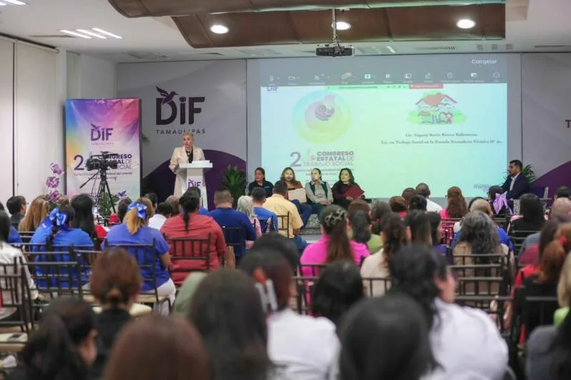 Ciudad Victoria, Tamaulipas.- El Sistema DIF Tamaulipas, encabezado por la doctora María de Villarreal, llevó a cabo el Segundo Congreso Estatal de Trabajo Social “La familia, columna vertebral del interés superior de la niñez”, un espacio orientado a fortalecer las herramientas profesionales para la atención y acompañamiento de las familias, así como de niñas, niños y adolescentes en el estado.