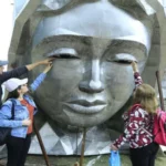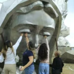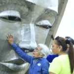 Y así como ella, se pueden apreciar a hombres y mujeres de todas las edades que han atendido la invitación para apreciar la imagen del rostro antes de que sea colocado en la parte más alta de la escultura.