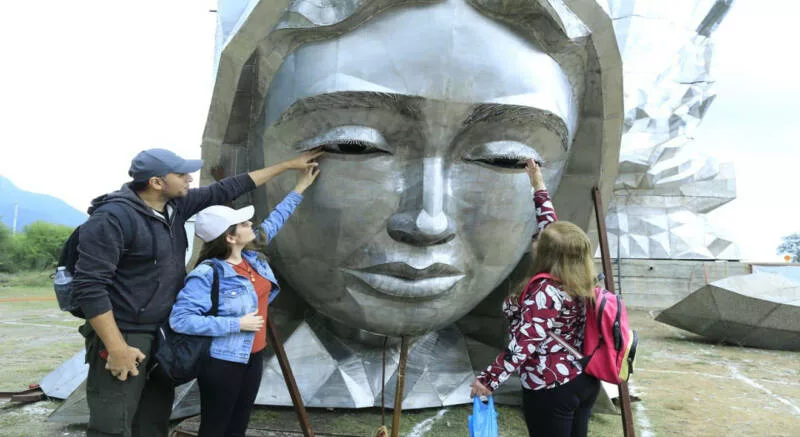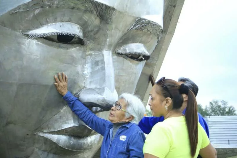 Y así como ella, se pueden apreciar a hombres y mujeres de todas las edades que han atendido la invitación para apreciar la imagen del rostro antes de que sea colocado en la parte más alta de la escultura.