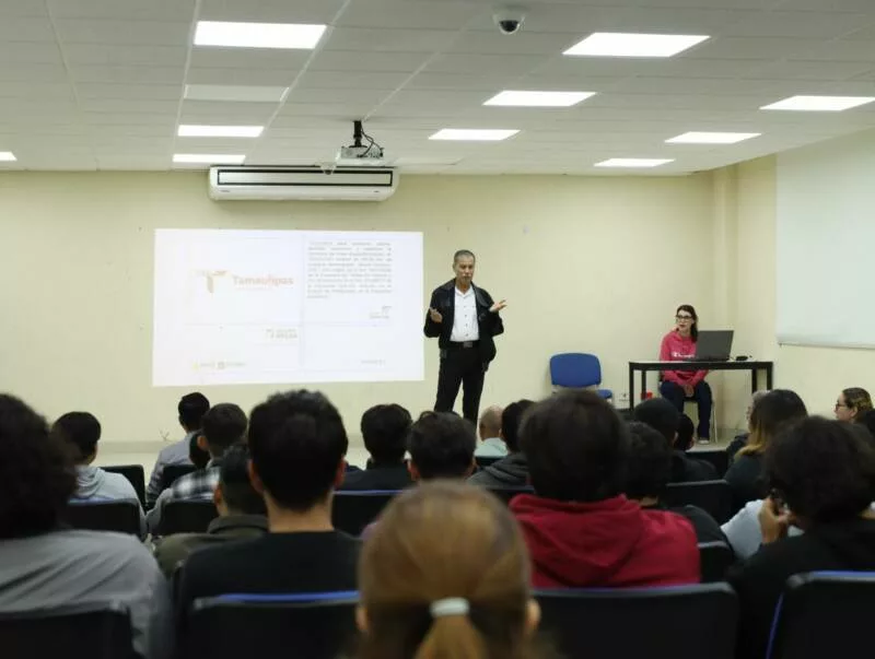 Ciudad Victoria, Tamaulipas. - La Secretaría de Obras Públicas (SOP) del Gobierno del Estado impartió una conferencia magistral sobre el proceso de construcción de la carretera Mante-Ocampo-Tula (MOT) a estudiantes del Instituto Tecnológico de Ciudad Victoria, con el propósito de fortalecer la formación académica de las y los futuros profesionales de la ingeniería.