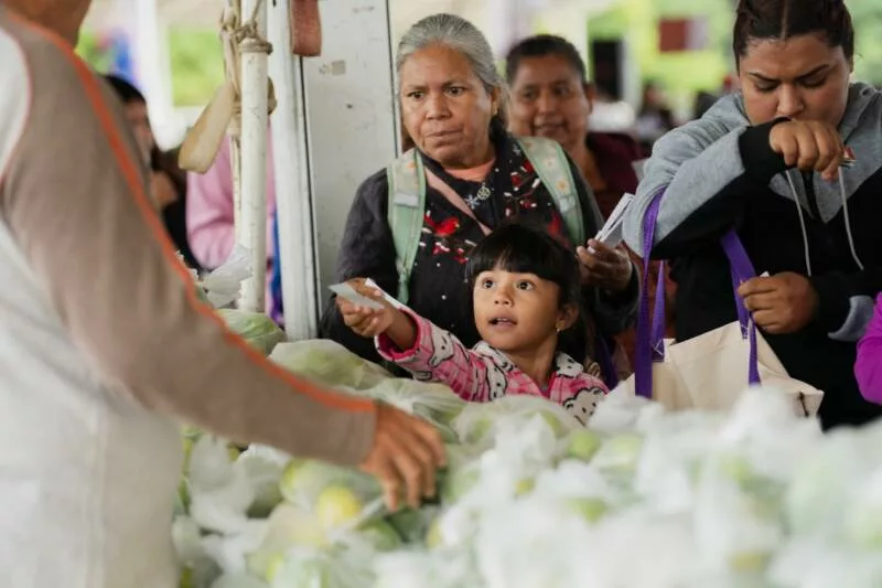 Acelga, betabel, brócoli, calabaza, cebolla, chile, chorizo, cilantro, elote, frijol, limón, nopal, queso fresco, repollo, tomate, tomatillo verde, zanahoria, harina de maíz, arroz, aceite y una dotación de filete de pescado integraron los paquetes. Los propios productores trasladaron sus cosechas desde diversas regiones del estado, lo que fortaleció el vínculo directo entre quienes siembran y las familias que recibieron los alimentos.